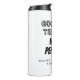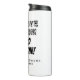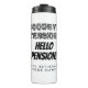 Funny retirement travel thermal mug for retiree. Create your own gift with fun quote. Humorous typography design for retired dad, brother, uncle, grandpa, coworker, colleague, company boss, teacher, trainer, husband, pensioner, best friend, sports coach, nurse etc. Black and white or custom color. Personalize with name. Handy tumblers for warm coffee and other drinks.