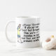 The original, funny demotivational / fake inspirational quote on this mug says, "Always remember: If you put your best foot forward, then you're left standing on your bad foot, and that's probably painful." It has a retro 40's or 50's graphic of a woman holding a teacher's pointer and wearing an apron, holding out one foot while she stands on the other. The image has been edited and colorized. This is a humorous saying for anyone who likes sarcasm and would also be good for a podiatrist.