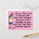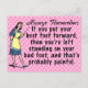 The original, funny demotivational / fake inspirational quote on this postcard says, "Always remember: If you put your best foot forward, then you're left standing on your bad foot, and that's probably painful." It has a retro 40's or 50's graphic of a woman holding a teacher's pointer and wearing an apron, holding out one foot while she stands on the other. The background is pink with faint white-pink polka dots. This is a humorous saying for anyone who likes sarcasm and would also be good for a podiatrist.