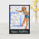 Featuring a fabulous 1950s glamour girl in full pin-up perfection, this cheeky card delivers vintage vibes with a modern twist.