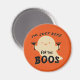 Funny retro Halloween button magnet with funny boo ghost holding two martini glasses. Featured in a distressed orange and black design.