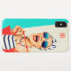 An outrageously funny retro style phone case with a fabulous woman in striped sunglasses, turban head wrap and jewelry heading to the beach with her polka dot tote bag and striped towel. She is the total embodiment of fun and fabulous self expression. A monogram text template is included for you to personalize with your monogram. The color block background in turquoise and beige adds to the summer beach vibe in the design. This case makes a great gift for your fabulous friends, bridesmaids, aunts, mothers, sisters, cousins, grandmother and more.