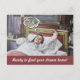 Realtor marketing card "Ready to find your dream home?" with funny retro woman sleeping and dreaming of a house. Real estate agent direct marketing piece with a sense of humor. Rich vintage colors in the fun illustration. The text is editable and you can add your own text on the back if you like.