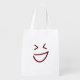 I own a lot of reusable grocery bags, but this one holds its box shape and simply stands up on its own even if there is nothing in it. Its stiffer than your regular reusable bag too, and the material is water resistant. I poured water on the exterior and it didn't penetrate inside to the other side. I'm buying a couple more. Wish I knew how durable these bags were or I would have purchased a few more with my initial order. I also like how it folds and buttons up when not in use, making it easy to put into a handbag or luggage. I haven't used this bag yet, as I purchased it for travel use, like when you're at the airport and need to small sturdy bag to place any airport purchases in, like food, souvenirs etc. I can tell you when you first see this bag, it looks very cheap, but after closer inspection of the material and the seams its a very sturdy reusable bag. I tested it out by putting some really heavy objects inside and I could not observe any stress to the bag at all. Another thing I like about it, is the fact the medium size that this is makes it easy to just carry it in your hand without the bottom of the bag scraping the ground, like most other bags do when you're short. That alone, deserves 5 stars. I just wish there were more colors to choose from! The PDX Airport Carpet printing looks just like the photo, and using this bag during travel might be a conversation piece when/if a native from Oregon happens to see it.