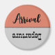 Funny and cute reversible dishwasher magnet. The "clean" side is a coral color and says Arrival The "dirty" side is a soft grey and says Departure!