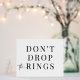 Funny ring bearer sign featuring the playful “Don’t Drop the Rings” message. This humorous wedding ceremony prop is perfect for a ring bearer walking down the aisle before the bride. The minimalist design with elegant typography makes it ideal for modern, classic, and romantic weddings. A fun and memorable detail that will make guests smile and create adorable wedding photos.