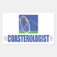 COASTEROLOGIST. Humorous title for someone who loves riding roller coasters at theme parks or at the fair- and, who has a sense of humor. Makes a unique and funny gift for him, for her, for boys, for girls. Design features a roller coaster against an evening sky. Find more funny designs like this one at the Ologist Shop.