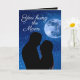 A black silhouette of a couple against a blue starry night sky and full moon is featured on the front of this romantic but humorous card. It says "You Hung the Moon" on the front. On the inside it says "But I : Hung all those stars, took care of the kids, did the laundry, ran all the errands etc. and bought you this card, Love, your name.. The I did everything else list is customizable. Give your loved one a little laugh with this funny but sometimes true romantic card.