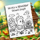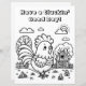 Cute adult coloring page for kids, teens or adults, Simple thick lines to make coloring easier. A cute rooster on a farm and a funny chicken pun quote, "Have a cluckin' good day".