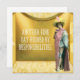 Adulting and responsibilities aren't fun for the most part and this design definitely speaks to the fun killing of everyday life. Whimsical, vintage fancy costumed performer photo cutout on a gold draped stage with "Another fine day ruined by responsibilities" in white text overlay.