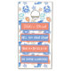 Personalized funny rules for drinking game. Crabs, dolphins, seashells, sand dollars and starfish in blue and orange.