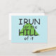 Running themed Postcard. Funny I Run for the Hill of it Saying Green Hill designed card.