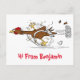 Funny running cool chicken cartoon illustration postcard