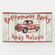 Add this Funny Rustic Retirement Party Banner to your upcoming event. Can be used indoors or outdoor. Designed with an old rusted red-orange truck on a rustic wooden-looking background. To personalize, simply insert the retiree's name into our template.