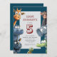 Roar into a fantastic 5th birthday celebration with this funny safari animals invitation! This eye-catching design features a collection of hilarious and friendly safari creatures, including a cheeky monkey, a goofy giraffe, and a grinning crocodile, ready to party. The lively artwork and bold colors are sure to capture the attention of all your guests and set a playful mood for the event. It's the perfect way to invite friends and family to celebrate your child's fifth birthday in style and fun.