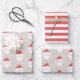 Christmas wrapping paper sheets with funny Santa Claus pattern and stripes in red and beige colors for kids winter holiday gifts.