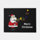 Fun Santa Claus playing the trumpet with Christmas presents coming out of the trumpet original art Christmas design.