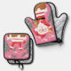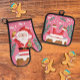 Funny Santa Pink Oven Mitt and Pot Holders Set