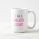 Playful pink text mug featuring the phrase I Am a Sarcastic Delight. A fun way to start the day with a dose of attitude and humor. Ideal for anyone who thrives on sarcasm, loves witty gifts, or wants a cheeky desk accessory that makes coworkers smile. Great for birthdays, office exchanges, or just treating yourself to something sassy.