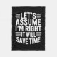 Funny sarcastic let's assume right will save time fleece blanket