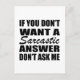 If you like funny sarcastic quotes or great humorous designs then this original slogan " If you don't want a sarcastic answer, don't ask me " is for you. It's a great gift for your family, friends, or yourself! This design is ideal for anyone who loves sarcasm and humor. If you like this funny quote, check out more similar artworks in the Omitay store. Stay safe and thank you for supporting a local artist.
