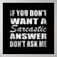 If you like funny sarcastic quotes or great humorous designs then this original slogan " If you don't want a sarcastic answer, don't ask me " is for you. It's a great gift for your family, friends, or yourself! This design is ideal for anyone who loves sarcasm and humor. If you like this funny quote, check out more similar artworks in the Omitay store. Stay safe and thank you for supporting a local artist.