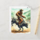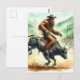 Funny Sasquatch Rides Bull in Rodeo Watercolor Postcard