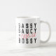 Personalize and relish in your attitude with this funny Sassy Saucy and a Little Bit Bossy typography design. Text is black and red on a white mug.