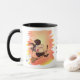 This is a funny mug that features a grinning cartoon witch on her broom against a gradient orange and gold sky. The same image is printed on both sides of the mug, and the customizable text in the middle says "Even the best of us rides a broom somedays!" Cute!