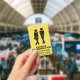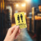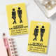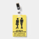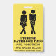 Humorous school teacher's student bathroom hall pass badge done in yellow with black stencil like figures of a urgent need boy and girl. Personalize the text fields to read what you want.