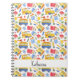 Funny custom name notebook with watercolor yellow school bus in pattern. Cheerful and perfect notebook personalized name for students or teachers going back to school.