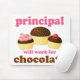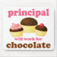 Funny school humor design for the principal. Chocolate cupcakes with slogan that says Principal - Will Work For Chocolate. Unique gift for your favorite elementary or high school principal.