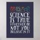 Science Is True Whether Or Not You Believe In It. Inspirational science design for those who believe in scientific proof, lab experiment and research. Cool motivational merchandise for science teacher, scientist and students. Perfect for science geek, nerd, high school teacher and student who love biology, physics and chemistry. Great Christmas gift and birthday present for son, daughter, college friend, brother or sister. Background color can be customized to your desired color.