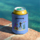 Funny scuba diver and fish sea creatures cartoon can cooler