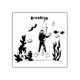 Funny scuba diver and fish sea creatures cartoon rubber stamp