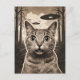 Funny Sepia Kitty and UFOs Postcard