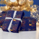 Funny Serial Killer Typography Spooky Pumbkin monogrammed Navy Blue and grungy gold Wrapping Paper.