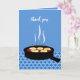 This humorous greeting card has an image of a skillet with shakshuka, a dish of eggs in spicy tomato sauce. It says Thank You.
