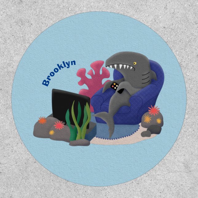 This funny design features a shark watching TV. A fishing show perhaps? Drawn in fun cartoon illustration style.
