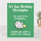 Sheep design cartoon illustration makes this a fun large birthday card! Slogan says "don't be sheepish - celebrate with a drink at a baaaa!".