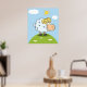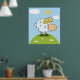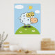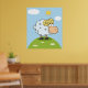 A cartoon style sheep with a funny grin on top of a hill. This design looks really effective on these Poster