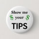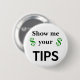 Funny Show Me Your Tips Custom Size button. Show me your TIPS typography with 2 green dollar signs. Share some humor and fun with your customers. You can customize the size and shape of your button.