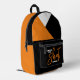 Add a touch of whimsy to your photo shoots (local and abroad) with this backpack, which features the humorous quote "Shutterbugs shoot to thrill" on a geometric orange, black, and white background.