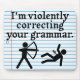 You've probably seen the popular nerd phrase, "I'm silently correcting your grammar." This funny spoof mousepad design takes it to a new level. It says, "I'm violently correcting your grammar" in a typewriter font and shows a stick figure shooting another stick figure with an arrow on a lined notebook background. Wear it or carry it to your favorite writer's conference, teacher's meeting or anywhere else where nerds, literary snobs and grammar police hang out, and you'll be the baddest geek in the room.