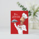 A funny singing chef illustration with "Bon Appetit" text that you can edit as you wish. The rich red background adds contrast and warmth.