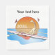 A funny cartoon illustration of a giraffe rowing a single sculls boat, training for a rowing regatta.