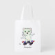 I own a lot of reusable grocery bags, but this one holds its box shape and simply stands up on its own even if there is nothing in it. Its stiffer than your regular reusable bag too, and the material is water resistant. I poured water on the exterior and it didn't penetrate inside to the other side. I'm buying a couple more. Wish I knew how durable these bags were or I would have purchased a few more with my initial order. I also like how it folds and buttons up when not in use, making it easy to put into a handbag or luggage. I haven't used this bag yet, as I purchased it for travel use, like when you're at the airport and need to small sturdy bag to place any airport purchases in, like food, souvenirs etc. I can tell you when you first see this bag, it looks very cheap, but after closer inspection of the material and the seams its a very sturdy reusable bag. I tested it out by putting some really heavy objects inside and I could not observe any stress to the bag at all. Another thing I like about it, is the fact the medium size that this is makes it easy to just carry it in your hand without the bottom of the bag scraping the ground, like most other bags do when you're short. That alone, deserves 5 stars. I just wish there were more colors to choose from! The PDX Airport Carpet printing looks just like the photo, and using this bag during travel might be a conversation piece when/if a native from Oregon happens to see it.