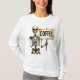 A skeleton with a coffee cup smiles as he holds his cup and a "coffee" sign on the front, and he swims in a coffee mug of his own on the back of this shirt. Templated text allows you to change the phrase "Coffee. Because Murder is Wrong" if you would prefer to customize with your own phrase instead.
