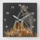 Funny Skeleton Sitting In Flames Personalized Square Wall Clock
