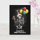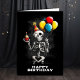 Send your birthday wishes with a quirky twist! This bold birthday card features a cheerful skeleton decked out in a party hat, holding a bunch of festive balloons and a cupcake topped with a single glowing candle. It’s the perfect way to celebrate another trip around the sun with humor and style.